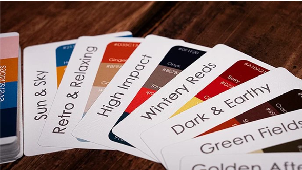 This is what “EASYTONES” is all about. It is a deck of cards, very much like playing cards, except each card is a colour-chart like those used by painters or graphic designers. Each card contains 4 different colours that supposedly can work well with one another. They are grouped under a specific colour scheme name. There are altogether 40 cards, and therefore 40 X 4 or 160 different colour samples. Each colour comes with a specific name and a specific code number.