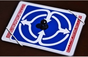 The performer spins the device. When it stops spinning, the card is taken out. It is seen that the ink on the selected card has “stretched” on both the face as well as on the back, due to the centrifugal force generated during spinning. Both the selected card and the spinner can be examined.